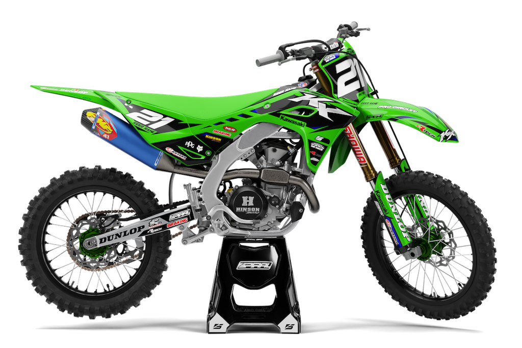 Kawasaki // Beast Green Motocross Graphics Kit made by SpiralGFX, Licensed by KTM, Husqvarna & Gas Gas and printed on the very best materials with high quality print equipment.